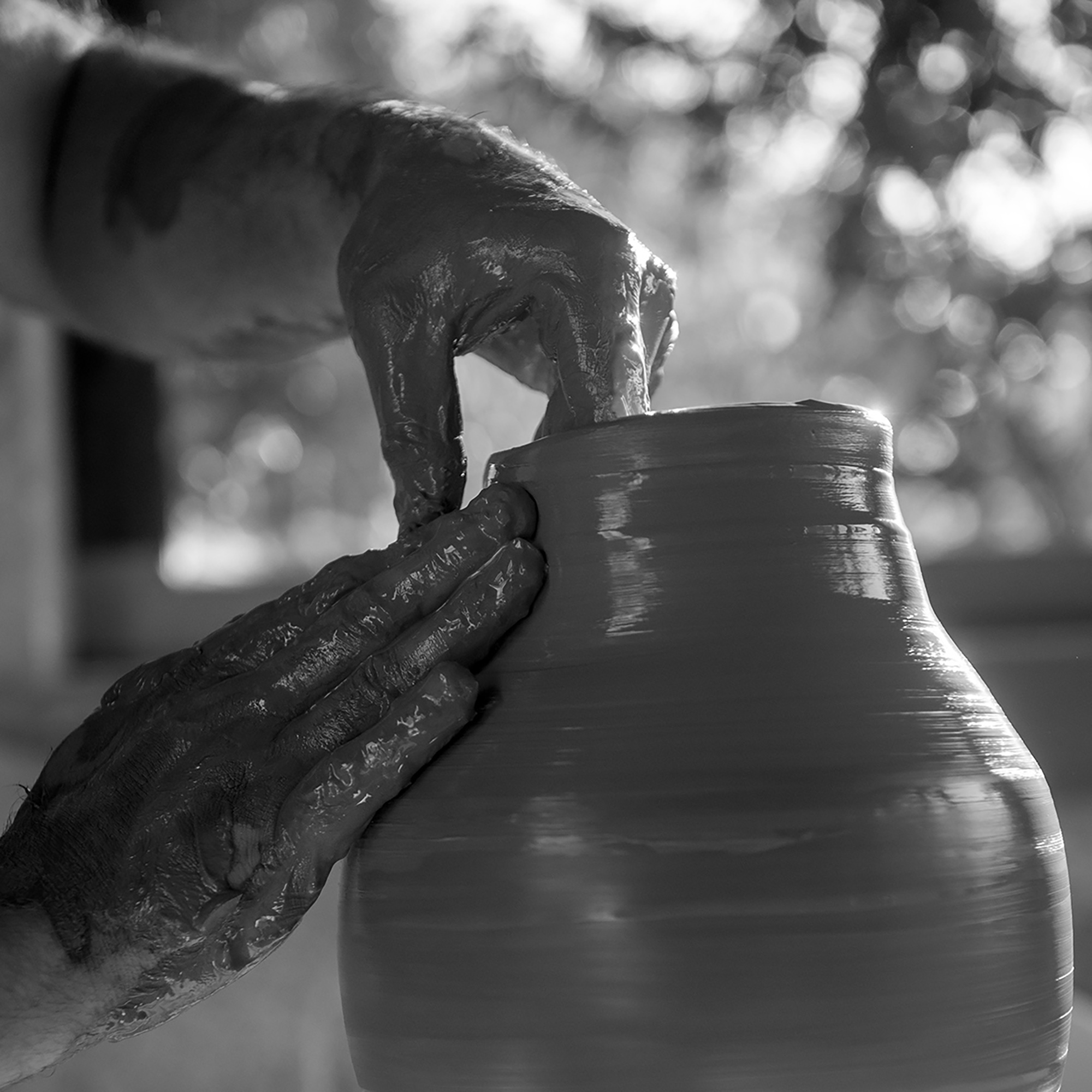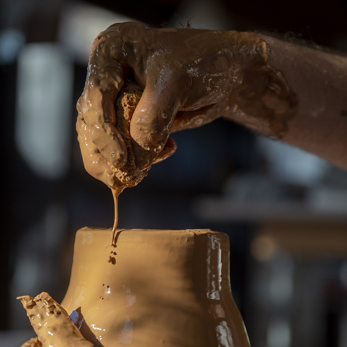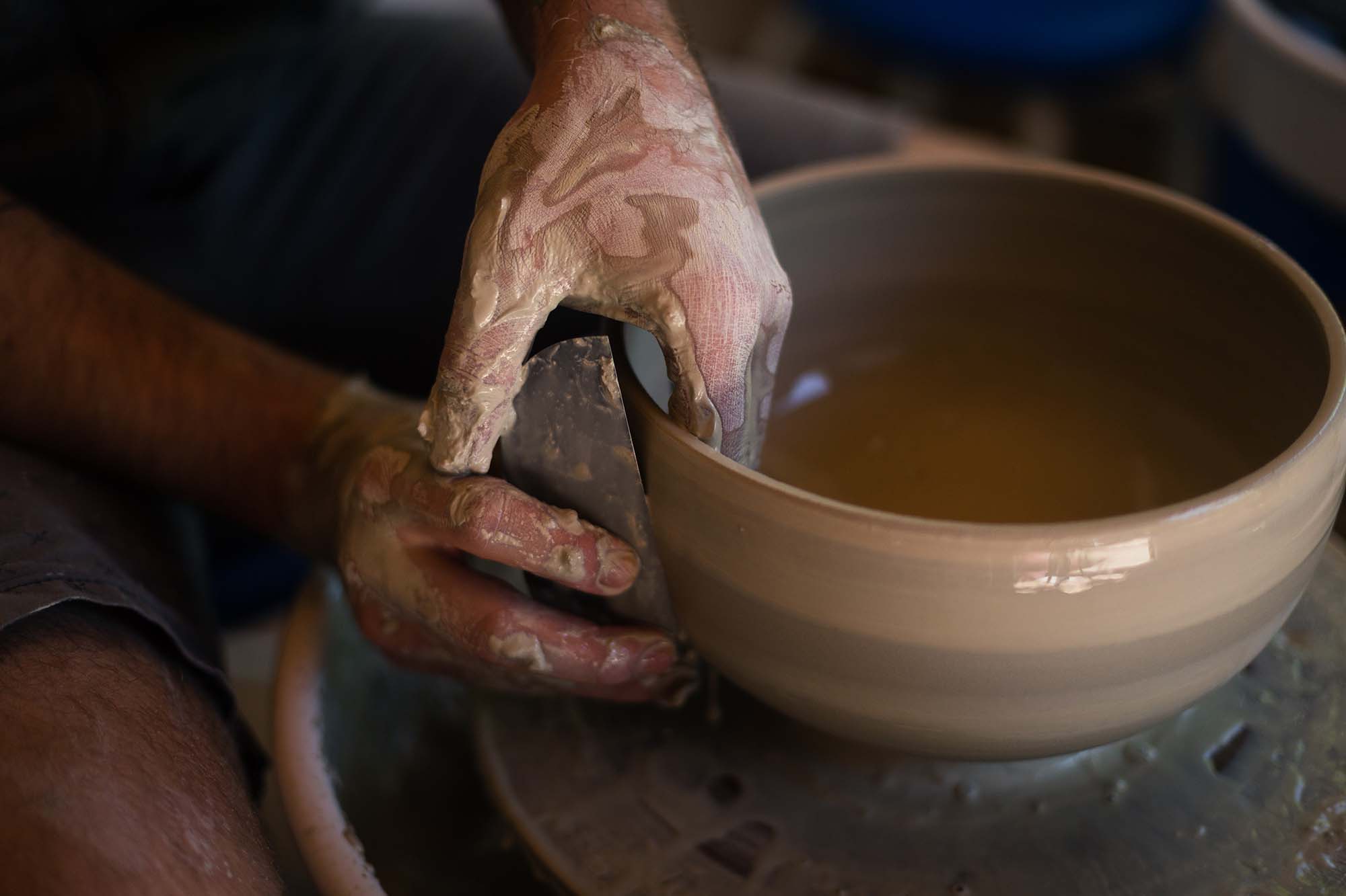 Le tour de potier est utilisé pour façonner des pièces régulières et symétriques. Il demande une certaine pratique et un ancrage caractérisé par une dimension spirituelle et méditative, nécessaire au centrage de la terre pour pouvoir ensuite la “tirer” vers le haut et affiner la paroi. Dans tout les cas, une priorité sera mise sur la technique au delà de l’esthétique, qui elle, viendra dans un second plan.